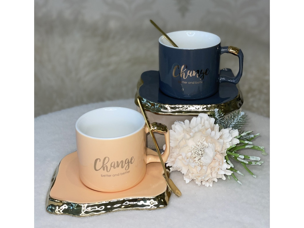 💚Чашка с блюдцем и ложкой "Change" 230 мл, два кольори