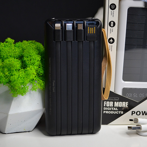 Повербанк 20000 mAh із сонячною батареєю та ліхтариком, 4 вбудовані кабелі