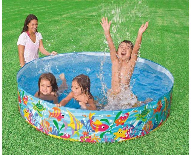 Для використання достатньо розташувати басейн на рівній поверхні та заповнити його водою. Стінки басейну виготовлені із міцного пластикового матеріалу, який дозволяє бортам тримати форму навіть за активного використання. Завдяки своїм компактним розмірам цей басейн не займає багато місця і швидко нагрівається на сонці.