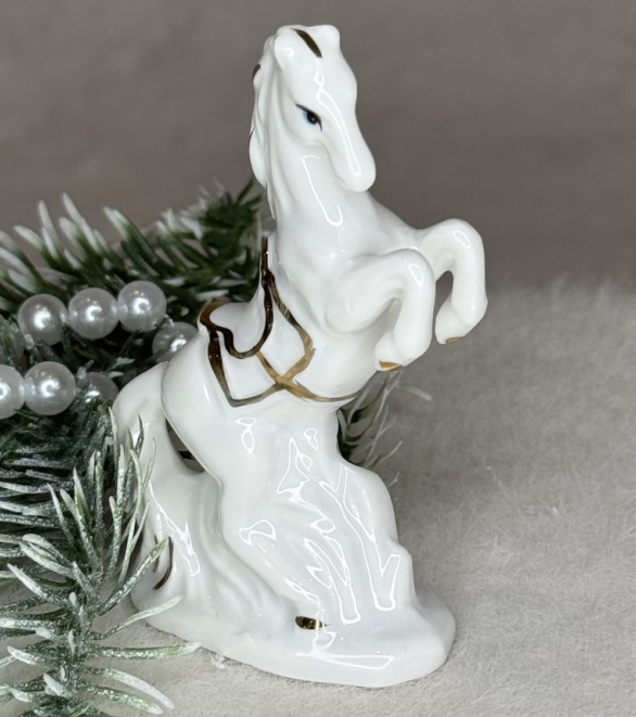 Отримайте цю позицію безкоштовно при покупці «🤍Декоративна маленька статуетка порцеляновий Кінь з сідлом на дибах 8,8х5,5х3 см Білий»