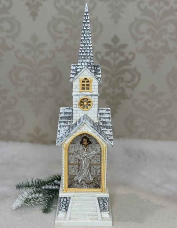 Різдвяний музичний декор з автопіддувом глітера Церква