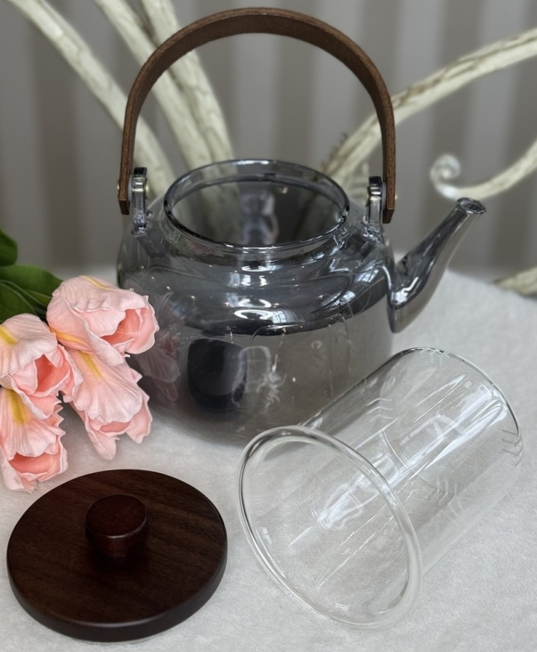 Чайник має зручну дерев'яну ручку, що виключає ризик обпектися. Прозорі стінки дають можливість спостерігати за тим, як розкривається чайний лист, що додає естетичності чаюванню.