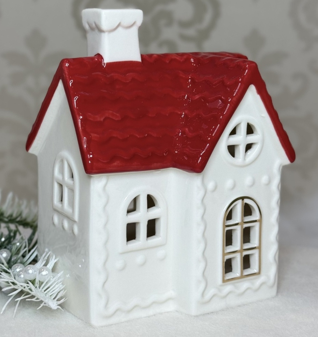 ❤️Порцеляновий Будиночок LED нічник 12х16х8см Декоративна новорічна статуетка світильник Білий з червоним